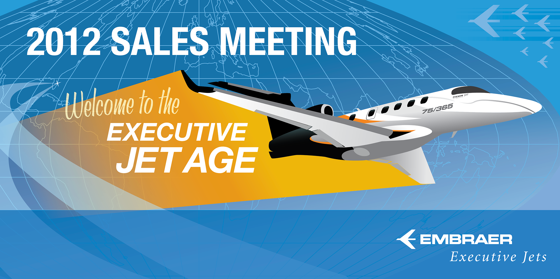 Graphic illustration for background displays at Embraer Executive Jets annual sales meeting. Primary art direction for this design was to express a mid-century Jet Age look and feel.
