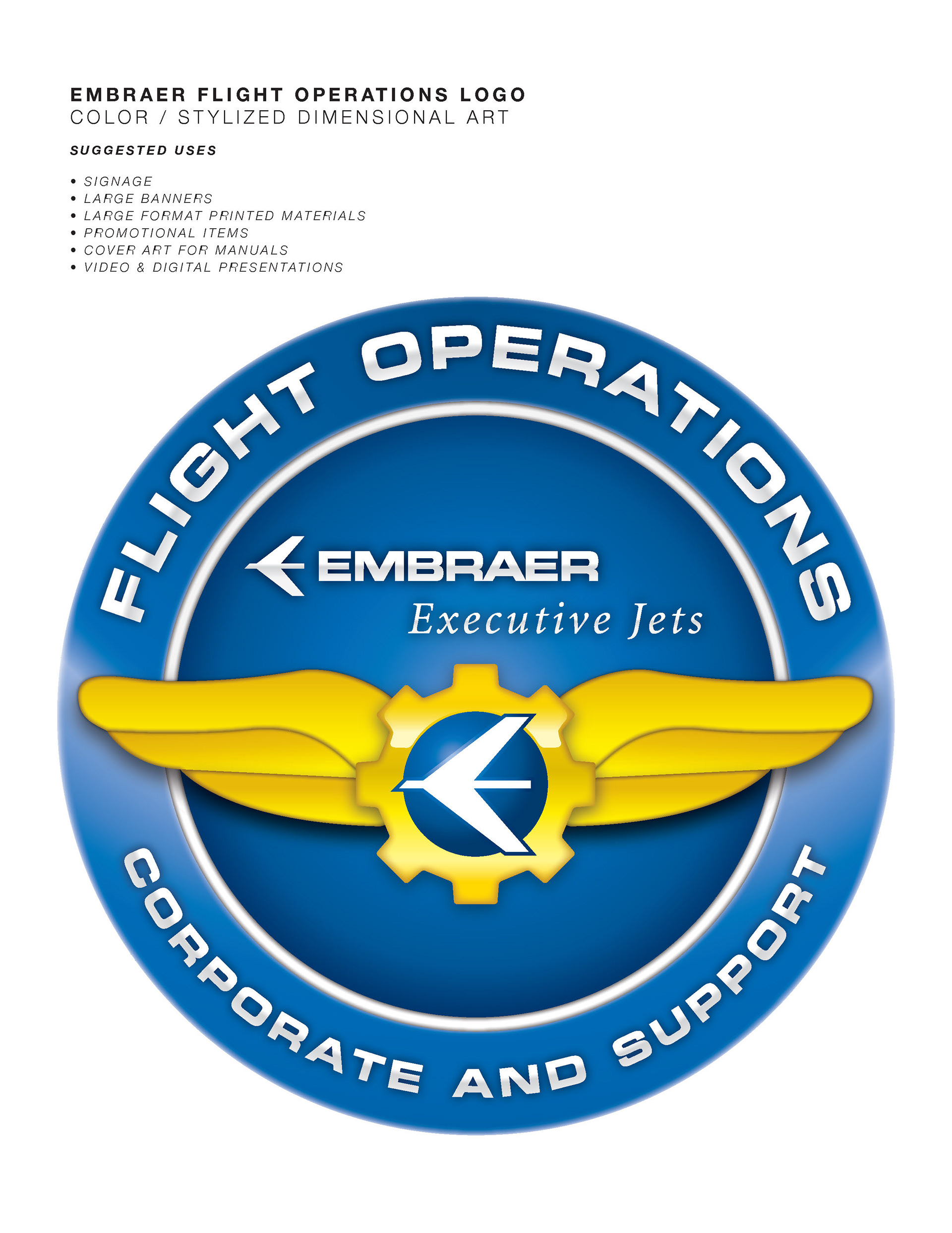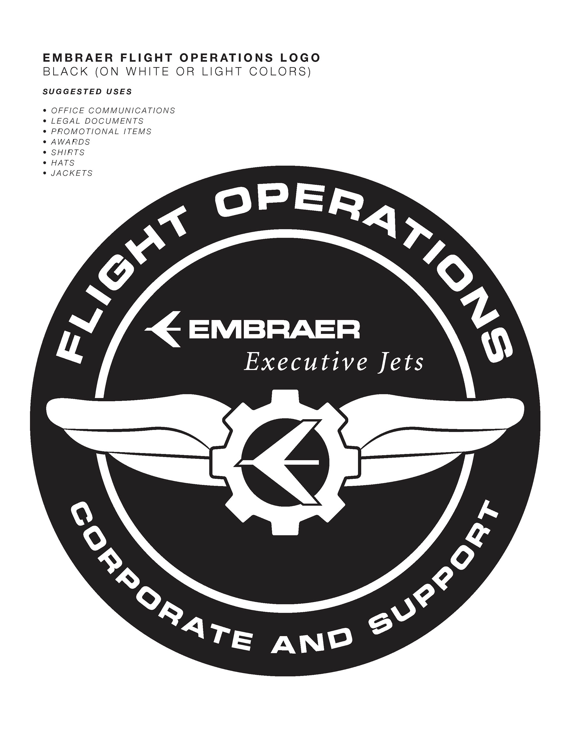 the Embraer Flight Operations logo is a specific identity mark for the internal division that supports all flight operations and planning at Embraer Executive Jets corporate manufacturing facility. This logo needed to be versatile and usable across all print and digital platforms and used on flight suits and official documentation.